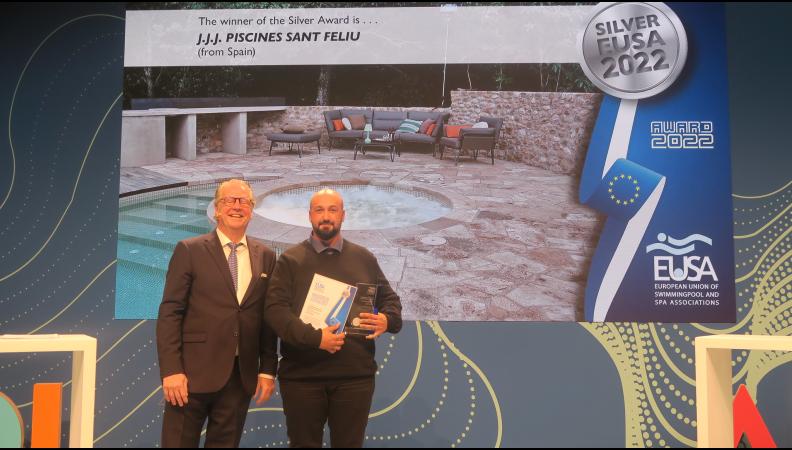 Los Premios Europeos a las Mejores Piscinas e Instalaciones Acuáticas 2022 premiaron a la empresa J.J.J. Piscines Sant Feliu con la medalla de plata en la categoría de los mejores spas domésticos, por un de sus trabajos.